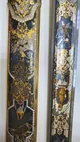 Клинки и ножны этого меча выполнены из драгоценных металлов: никеля, золота высшей пробы (толщина 10 мкм), а также украшены авторской ручной гравировкой. Детали, подчеркнутые техниками чернения, синения и эмали, добавляют мечу неповторимый шарм. Исключительное внимание к деталям не оставит равнодушным даже самого взыскательного заказчика.