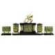 Этот роскошный набор, выполненный вручную, изготовлен из редкого змеевика, мрамора «Карелия» и дополнен художественным литьем из бронзы. Ключевым элементом является кварцевый механизм, обеспечивающий безупречную точность времени – символа эффективности и надежности.